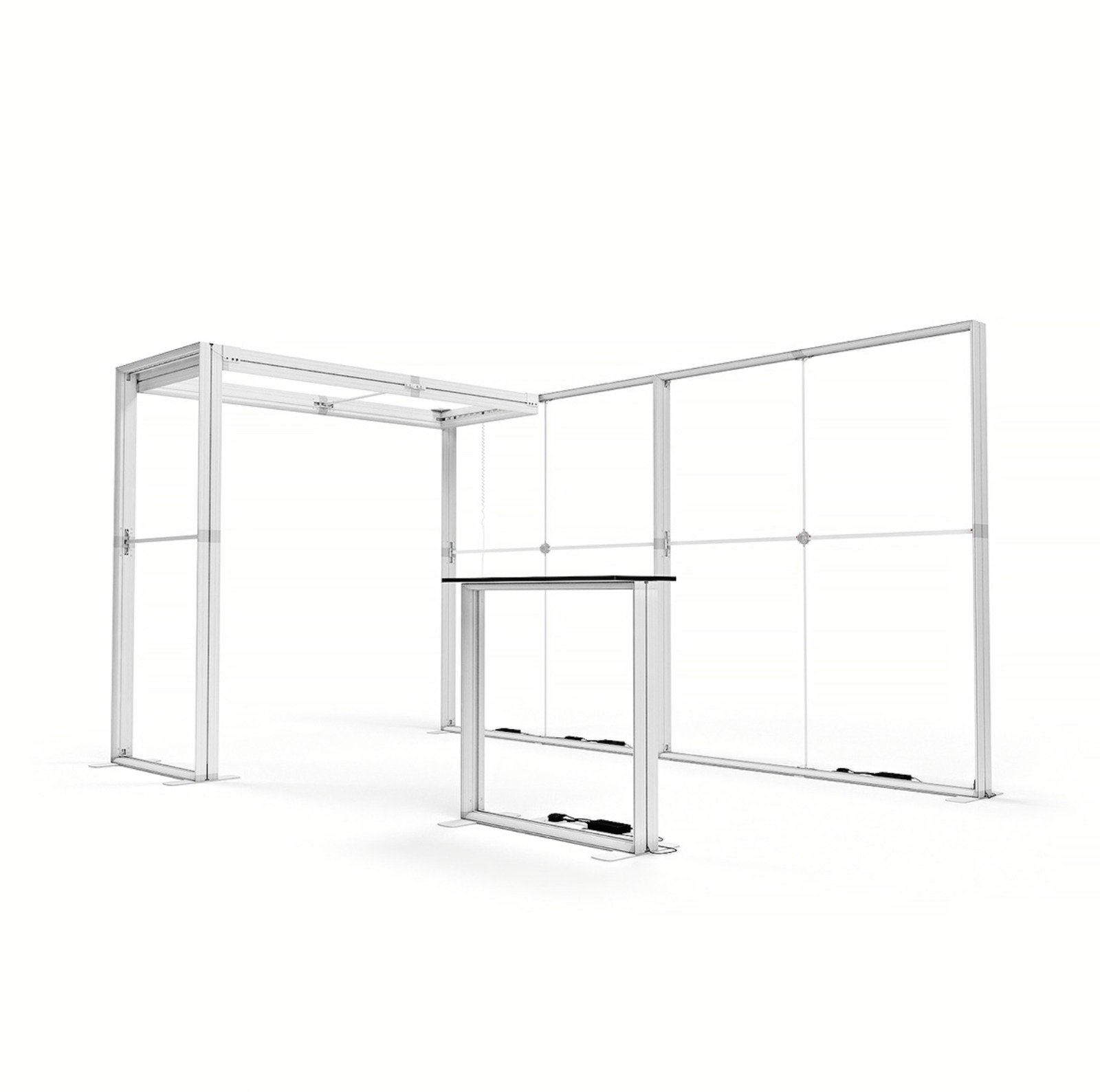 01 Estructura de 300x225cm +03 Estructuras de 85x225cm +01 Estructura Counter de 100x100cm.